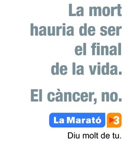 La Marató de TV3, en la seva XXI edició, va acabar amb una recaptació de 10.113.152 eur. A aquesta quantitat hi vàrem afegir la nostra aportació 164,65 eur! Tenim que sentir-nos orgullosos d'haver col.laborat en aquesta fita. Som un gran Club i tenim un gran cor!